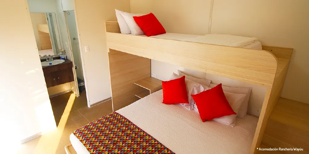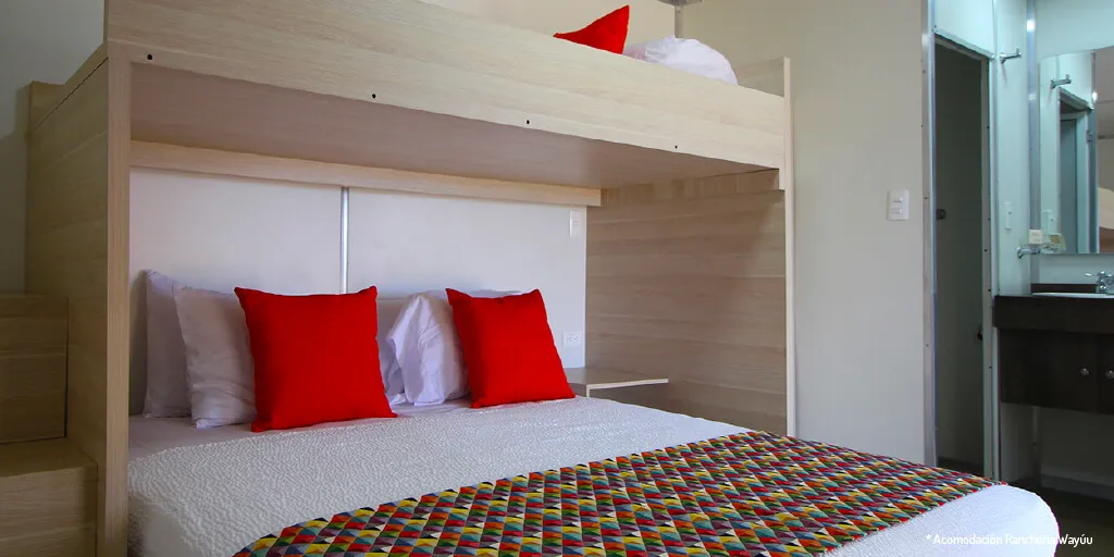 Elige entre nuestras opciones de alojamiento: desde rancherías con arquitectura Wayuú tradicional hasta suites de lujo con jacuzzi y vista panorámica al mar Caribe.